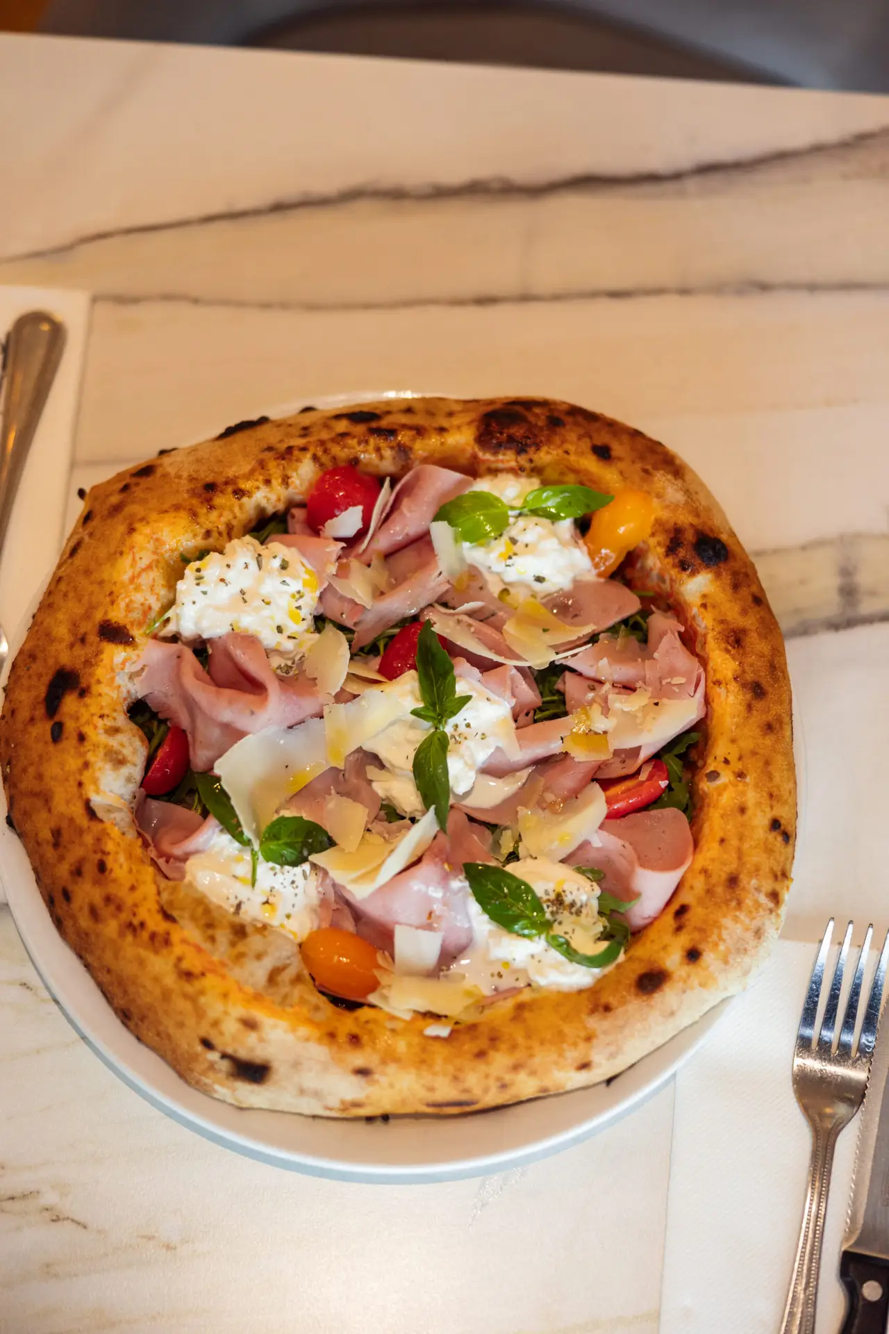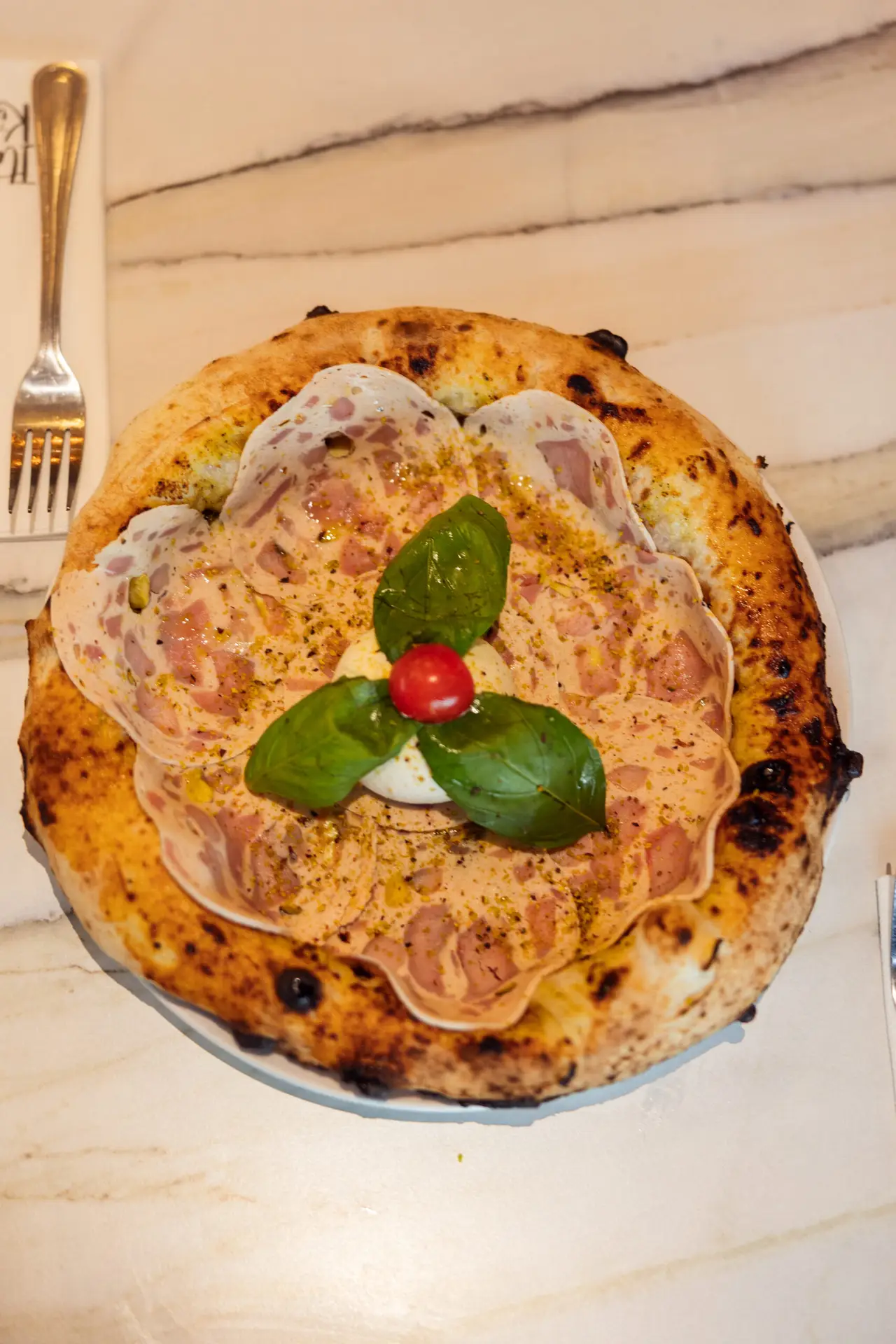 crème de pistache, mozzarella fior di latte, burrata, grain de pistache et zeste de citron